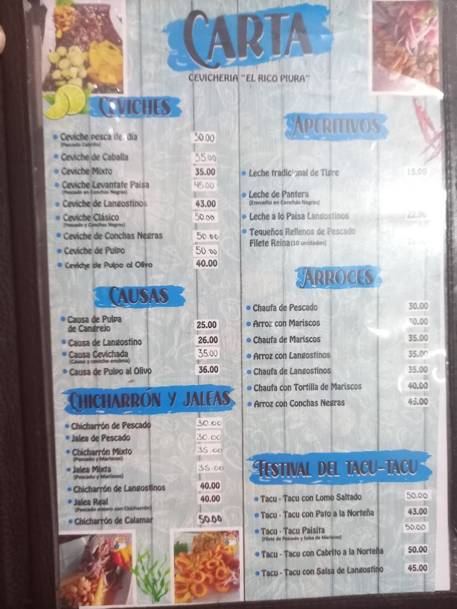 At Cevicheria 'el Rico Piura' Menu, you’re in for an authentic taste of Peru’s coastal delights. Located in the heart of Ate, this vibrant spot specializes in traditional ceviche, offering a variety of fresh seafood that brings the flavors of Piura straight to your plate. Whether you’re in the mood for the classic ceviche or something with a bit more flair, you’ll find plenty of choices that celebrate the best of Peru’s rich culinary heritage. Every dish is prepared with the finest ingredients, ensuring a mouthwatering experience with every bite. With its casual vibe and incredible flavors, it’s no wonder that Cevicheria 'el Rico Piura' Menu is a must-try for both locals and visitors alike.
